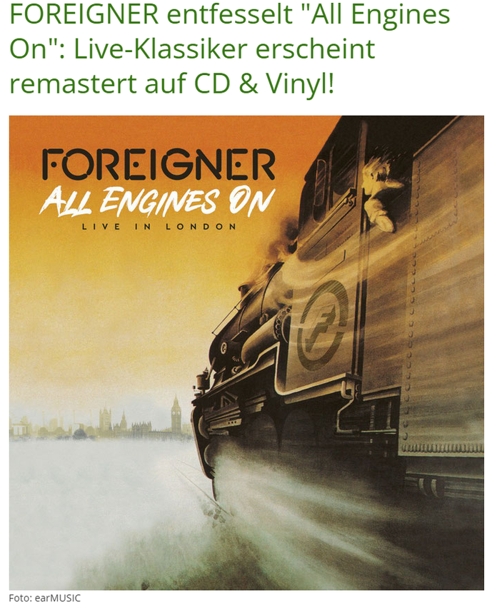 - FOREIGNER entfesselt "All Engines On": Live-Klassiker erscheint remastert auf CD & Vinyl!