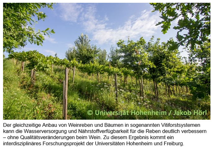 „Dabei ist die Idee nicht neu: Schon die Römer nutzten Bäume als natürliche Rankhilfen für Reben. Auch heute noch finden sich in Südeuropa traditionelle Vitiforstsysteme mit Walnuss- bzw.