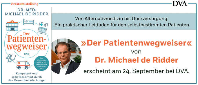 Genau hier setzt Michael de Ridders neues Buch „Der Patientenwegweiser. Kompetent und selbstbestimmt durch den Gesundheitsdschungel – Von Alternativmedizin bis elektronische Patientenakte“ an. Der erfahrene Arzt, Publizist und Palliativmediziner kennt unser Gesundheitssystem aus jahrzehntelanger Praxis. Mit großer Klarheit zeigt er, wie wir uns sicher bewegen können – zwischen Hausarztpraxis, Fachkliniken, alternativen Heilmethoden und digitaler Gesundheitswelt.
