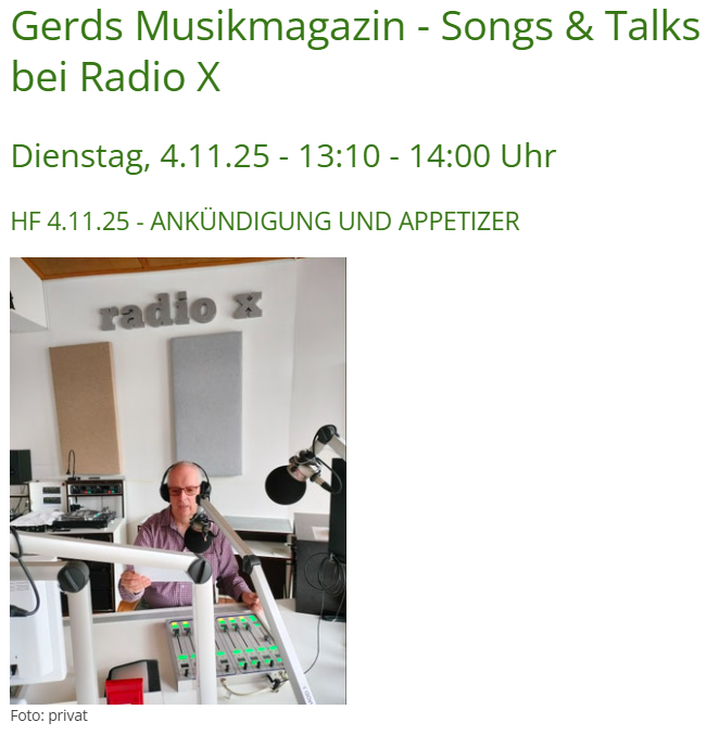 - Gerds Musikmagazin - Songs & Talks bei Radio X