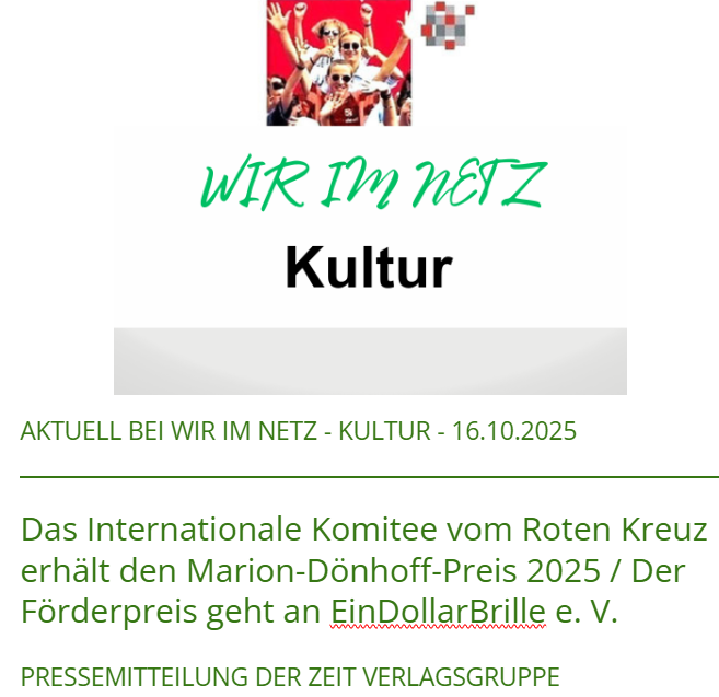 - Das Internationale Komitee vom Roten Kreuz erhält den Marion-Dönhoff-Preis 2025 / Der Förderpreis geht an EinDollarBrille e. V.