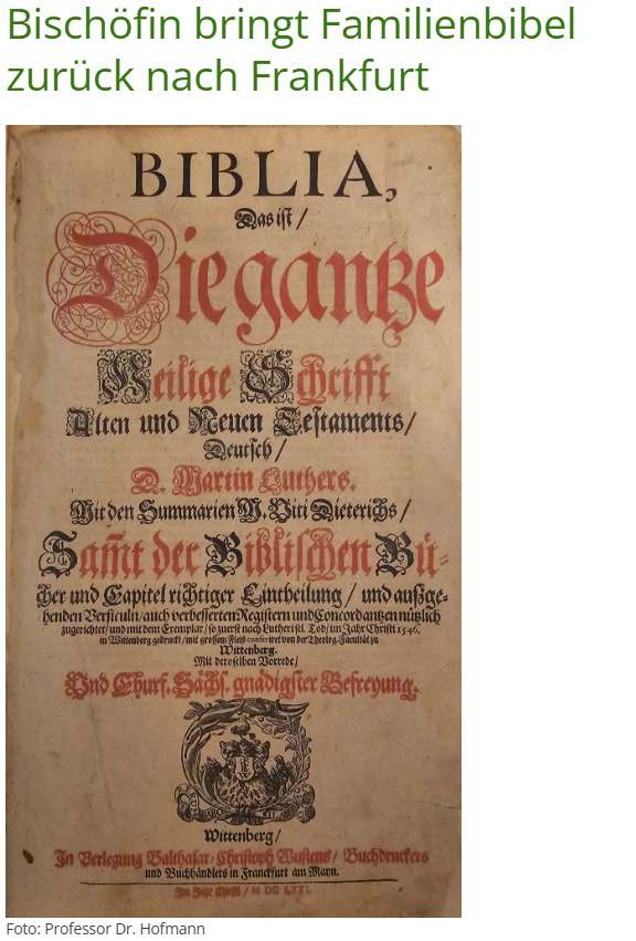 - Bischöfin bringt Familienbibel zurück nach Frankfurt