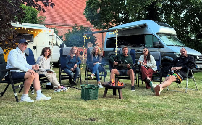 Auch die Promi-Camper der NDR-Sendereihe „Tietjen campt“ haben „Church 4 Night“ schon für sich entdeckt. Kürzlich machte die illustre Runde bekannter Persönlichkeiten rund um die Moderatorin Bettina Tietjen samt Kamerateam in Kartlow Station. Bettina Tietjen ist in diesem Sommer mit Boxlegende Axel Schulz, Podcasterin Ariana Baborie, Entertainerin Isabel Varell, Schauspieler Leo Reisinger und Handball-Weltmeister Pascal „Pommes“ Hens unterwegs auf Camping-Tour vom Harz an die Ostsee und machte dabei Halt in Kartlow. „Die Promis waren unglaublich herzlich und nahbar“, erzählt Arne Kühn begeistert. „Beim Campen sind wir alle eine große Familie. Und nachdem die Filmaufnahmen abgeschlossen waren und die sympathische Crew vom Kamerateam bereits weg war, saßen wir noch lange mit den Promi-Campern am Lagerfeuer, hatten viele gute Gespräche und haben mit Gitarrenbegleitung miteinander gesungen.“ Gemeinsam mit seiner Frau freue er sich auf viele weitere campende Gäste in Kartlow, so Arne Kühn. Und Silke Kühn ergänzt: „Das Campen bei uns ist kostenlos. Wir freuen uns aber über eine Spende für unsere Kirche. Wer schon mal schauen will, wie es ist, bei uns auf dem Pfarrhof zu übernachten, sieht sich am besten ‚Tietjen campt‘ an.“ Die Folge „Kirchen-Camping in Kartlow“ der Sendung „Tietjen campt – der Roadtrip“ ist am Freitag, 12. September, um 21.15 Uhr und am Samstag, 13. September, um 8.30 Uhr im NDR-Fernsehen zu sehen.