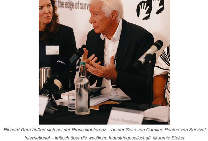 Richard Gere sagte während der Vorstellung des Berichts in London: „Wie lange noch werden wir in der industrialisierten Welt unkontaktierte Völker als bedauerlichen Kollateralschaden betrachten, während wir ihr Land für unsere Autos, unsere Häuser, unseren Energiebedarf, unseren Schmuck und unsere Unterhaltung plündern?”