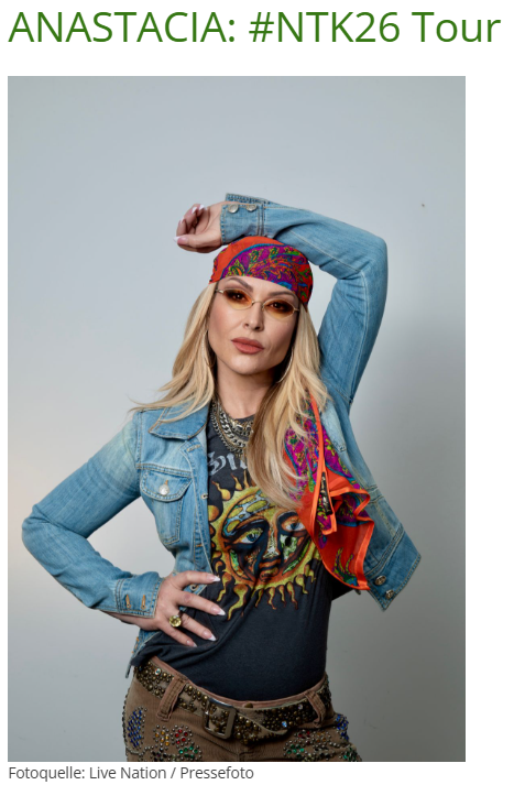 (Frankfurt/ln) - Mit einer der kraftvollsten Stimmen der modernen Musikgeschichte und ihrem unverkennbar einzigartigen Timbre zählt die Pop-Ikone Anastacia seit Anfang der 2000er weltweit zu den erfolgreichsten Popstars ihrer Zeit. Obwohl der ganz große Erfolg in ihrer Heimat, den USA, ausblieb, verkaufte sie weltweit mehr als 50 Mio. Tonträger und feierte Multi-Platin-Hits wie „I’m Outta Love“, „Paid My Dues“ und „Left Outside Alone“. Insgesamt erhielt die Sängerin bis heute über 225 Auszeichnungen in 31 Ländern und zählte Nummer-1-Hits in 19 Ländern. Darüber hinaus bekam sie mit ihren bisher veröffentlichten acht Alben Auszeichnungen wie den World Music Award, den MTV EMA, mehrere ECHOs, eine Goldene Kamera, einen Bambi, den Women’s World Award und viele weitere. 2025 feiert ihr ikonisches Debütalbum „Not That Kind“ sein 25-jähriges Jubiläum, was Anastacia auf einer Tour durch Großbritannien und Europa mit ihren größten Hits zelebriert und ihren Fans dabei besondere Shows verspricht. Auf der #NTK26 Tour wird sie im Herbst 2026 in Hannover, Düsseldorf, Frankfurt sowie Berlin zu sehen sein und auch in Wien Halt machen.