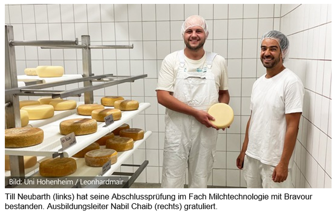 dank seiner Berufsausbildung an der Forschungs- und Lehrmolkerei der Universität Hohenheim in Stuttgart. Und das ist ab sofort auch amtlich: Der frischabsolvierte Milchtechnologe ist