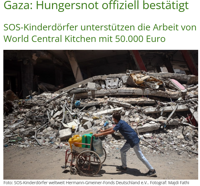 (München / Khan Younis/ots) - Hilfsorganisationen wie die SOS-Kinderdörfer haben seit Monaten gewarnt - nun wurde die Hungersnot im Gazastreifen auch offiziell bestätigt. Die Einstufung als Hungersnot ist die schlimmste Stufe auf der fünfstufigen IPC-Skala zur Klassifizierung von Ernährungssicherheit.