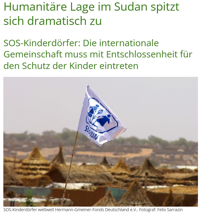 (Khartum/ots) - Ernährungsunsicherheit, Vertreibung, Gewalt, Krankheitsausbrüche - die Menschen im Sudan erleben die weltweit größte Vertreibungskrise und eine der schwersten Hungerkrisen. Die UN spricht von über zwölf Millionen Vertriebenen (innerhalb und außerhalb des Landes) - eine Dimension, die die Notlage der Bevölkerung beispiellos verschärft. "Die Krise im Sudan ist eine der schwersten humanitären Katastrophen der Gegenwart, aber sie ist auch eine der am meisten übersehenen", sagt Limia Ahmed, stellvertretende Leiterin der SOS-Kinderdörfer im Sudan.
