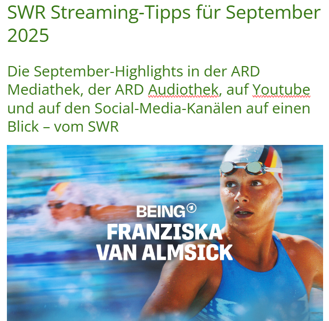 Die September-Highlights in der ARD Mediathek, der ARD Audiothek, auf Youtube und auf den Social-Media-Kanälen auf einen Blick – vom SWR