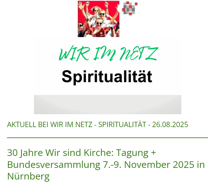 - 30 Jahre Wir sind Kirche: Tagung + Bundesversammlung 7.-9. November 2025 in Nürnberg