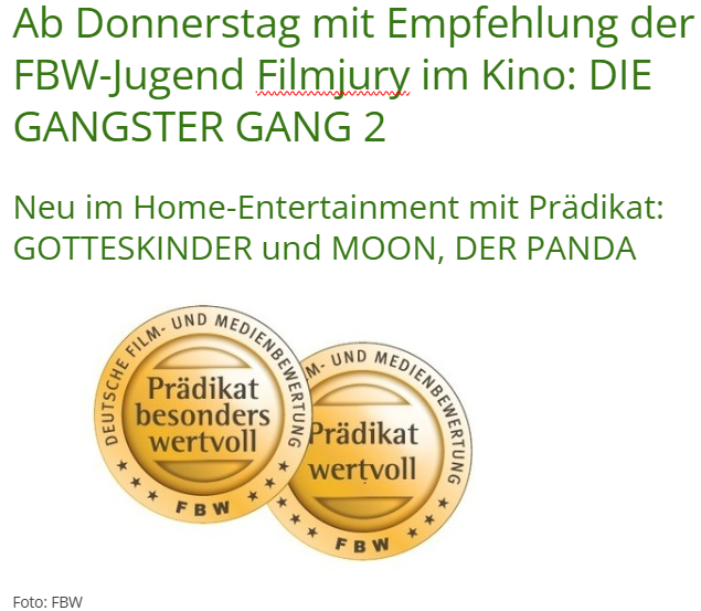 - Ab Donnerstag mit Empfehlung der FBW-Jugend Filmjury im Kino: DIE GANGSTER GANG 2