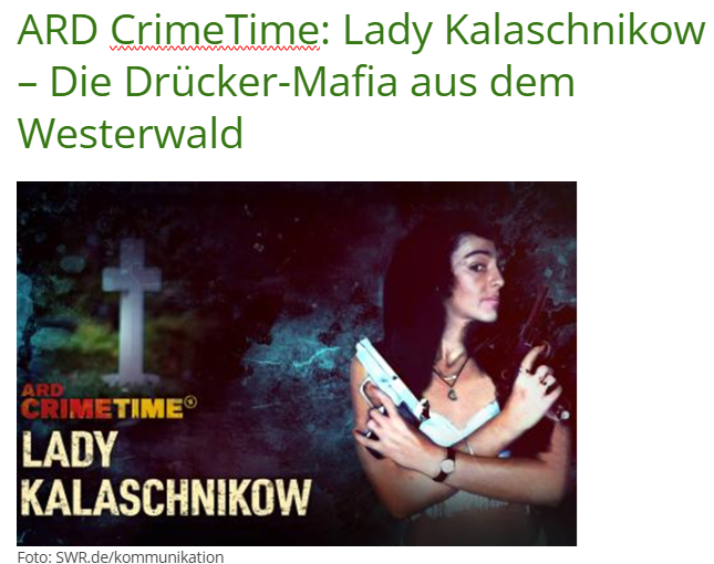 - ARD CrimeTime: Lady Kalaschnikow – Die Drücker-Mafia aus dem Westerwald