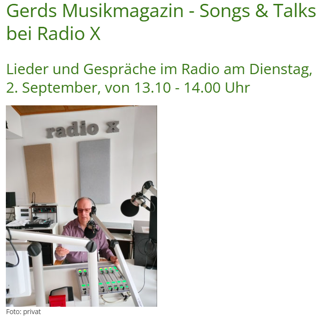 - Gerds Musikmagazin - Songs & Talks bei Radio X