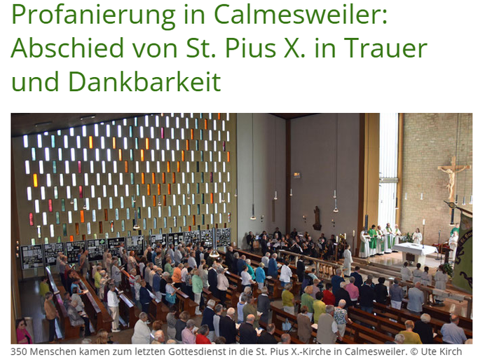 - Profanierung in Calmesweiler: Abschied von St. Pius X. in Trauer und Dankbarkeit