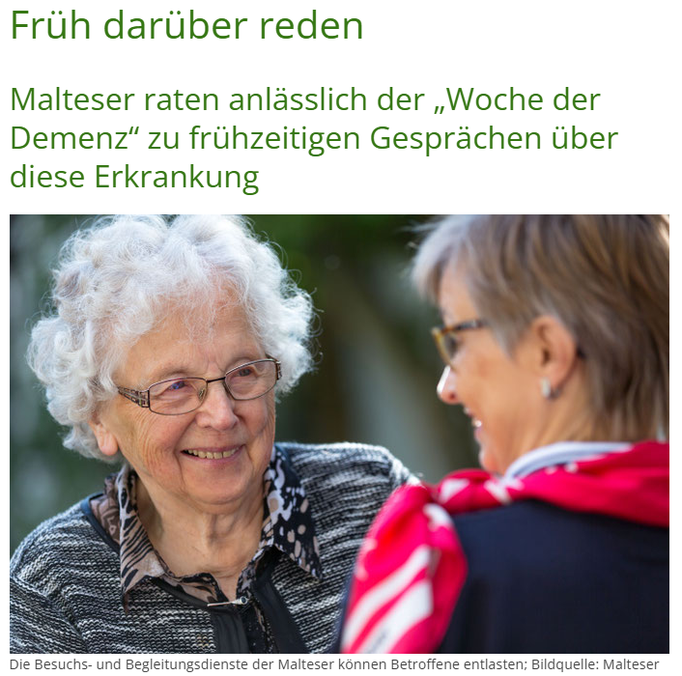Malteser raten anlässlich der „Woche der Demenz“ zu frühzeitigen Gesprächen über diese Erkrankung