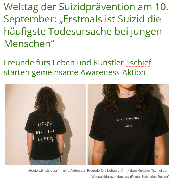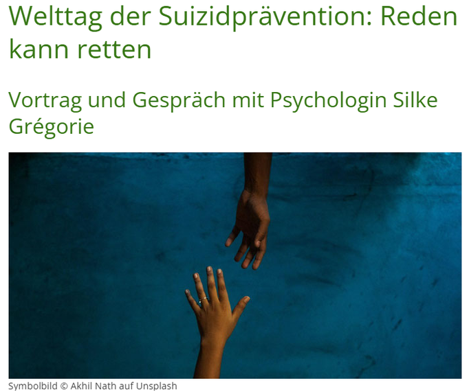 - Welttag der Suizidprävention am 10. September: „Erstmals ist Suizid die häufigste Todesursache bei jungen Menschen“