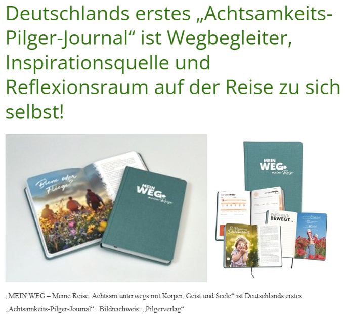 - Deutschlands erstes „Achtsamkeits-Pilger-Journal“ ist Wegbegleiter, Inspirationsquelle und Reflexionsraum auf der Reise zu sich selbst!