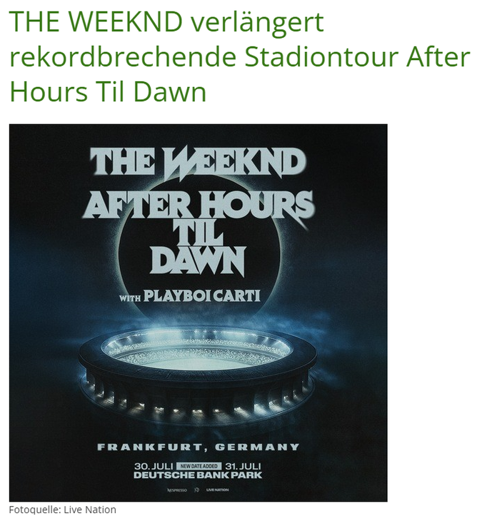 - THE WEEKND verlängert rekordbrechende Stadiontour After Hours Til Dawn