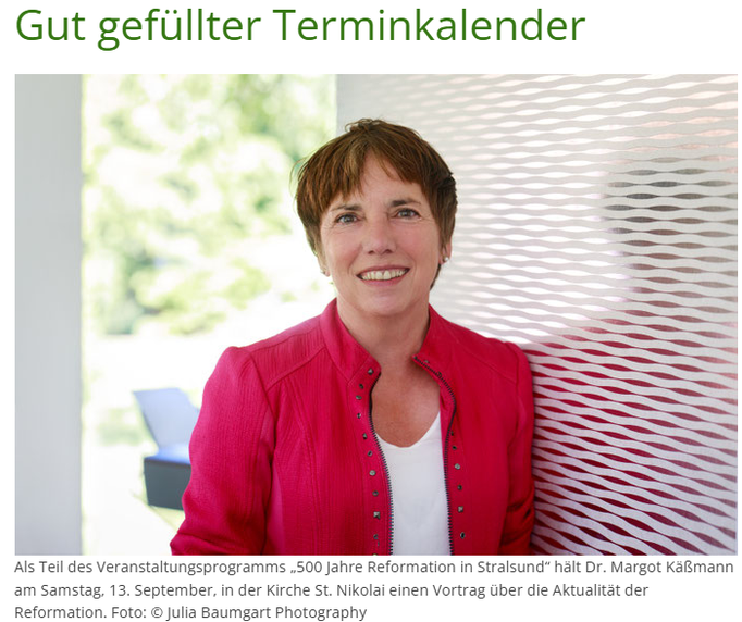 Veranstaltungsprogramm „500 Jahre Reformation in Stralsund“ läuft noch bis Mitte November – Vortrag mit Margot Käßmann