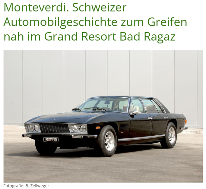 - Monteverdi. Schweizer Automobilgeschichte zum Greifen nah im Grand Resort Bad Ragaz
