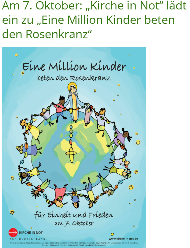 - Am 7. Oktober: „Kirche in Not“ lädt ein zu „Eine Million Kinder beten den Rosenkranz“