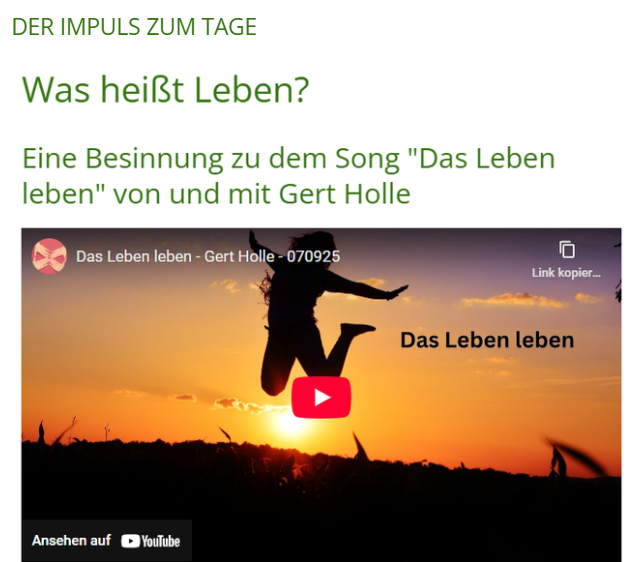 Der Song „Das Leben leben“ ist so gesehen eine Einladung: nicht im Grau stecken zu bleiben, sondern den Blick zu heben – hin auf die Quelle, die uns trägt. Leben heißt, den Fluss Gottes in uns zu spüren, der nie stillsteht.