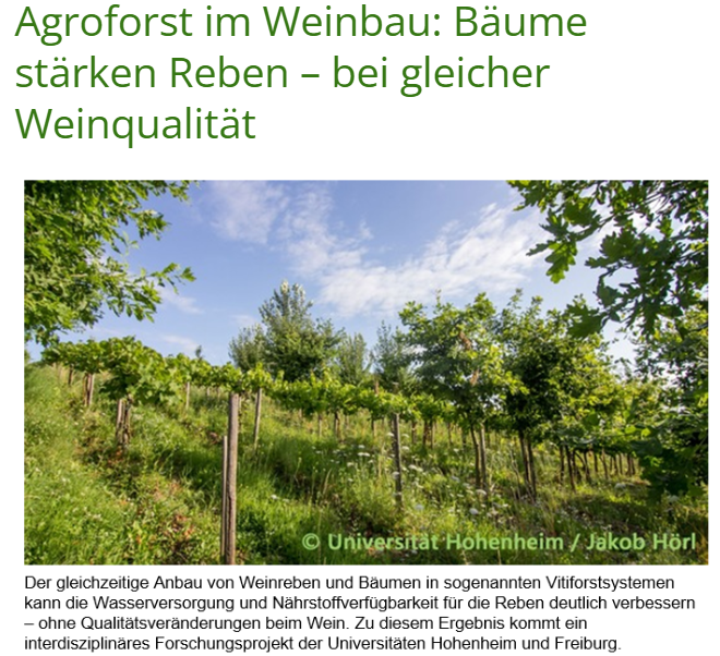 - Agroforst im Weinbau: Bäume stärken Reben – bei gleicher Weinqualität