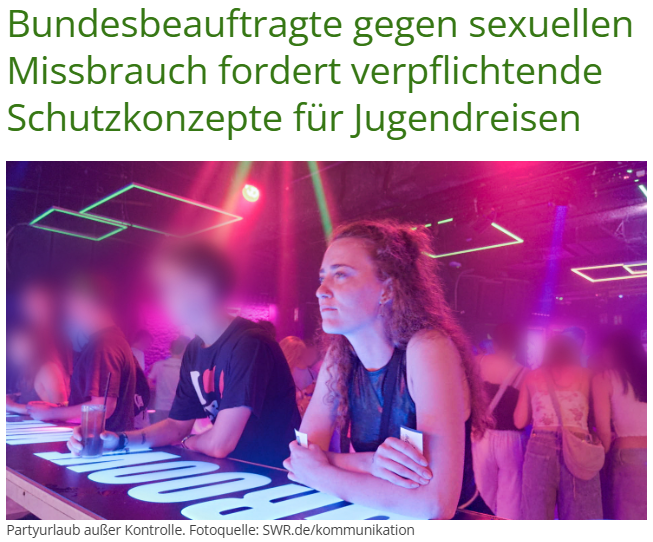- Bundesbeauftragte gegen sexuellen Missbrauch fordert verpflichtende Schutzkonzepte für Jugendreisen