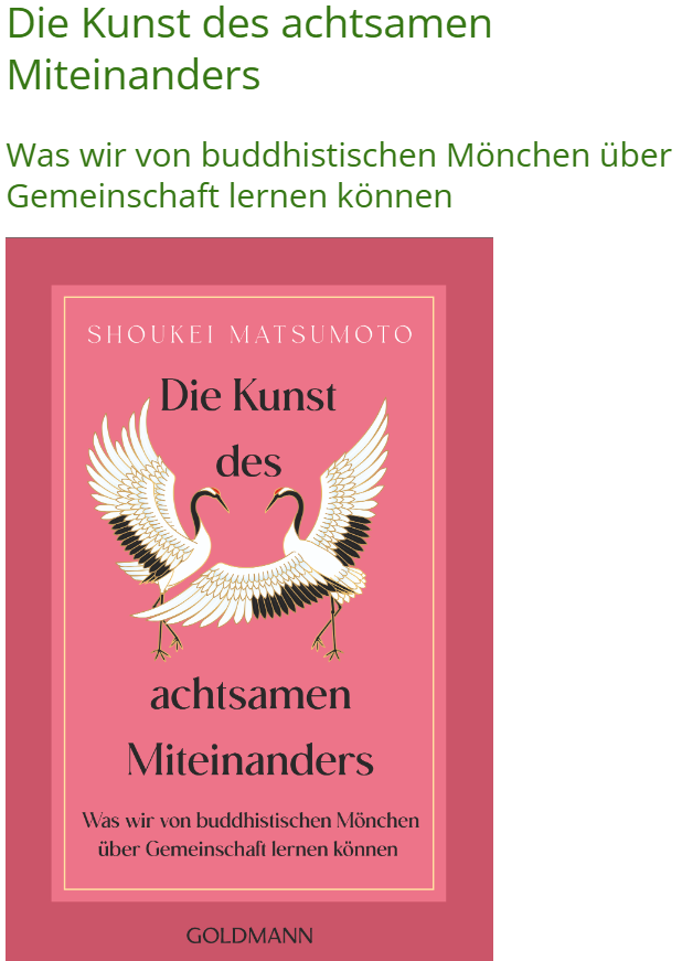 Der studierte Wirtschaftswissenschaftler Shoukei Matsumoto kehrt in diesem Buch zurück zu seinen Wurzeln und zeigt, wie sich buddhistische Philosophie und moderne Arbeitswelt verbinden lassen. Er spricht sich gegen den gegenwärtigen Ellenbogen-Kapitalismus aus und entwickelt Strategien, wie gemeinschafliches, bewusstes Arbeiten und wirtschaftlicher Erfolg Hand in Hand gehen können. Als vielleicht einziger Mönch, der auch im Forbes Business Magazine zitiert wird, liegt ihm daran, die Menschlichkeit in der Unternehmenswelt nicht abhanden kommen zu lassen und so ein friedvolles Miteinander zu schaffen.