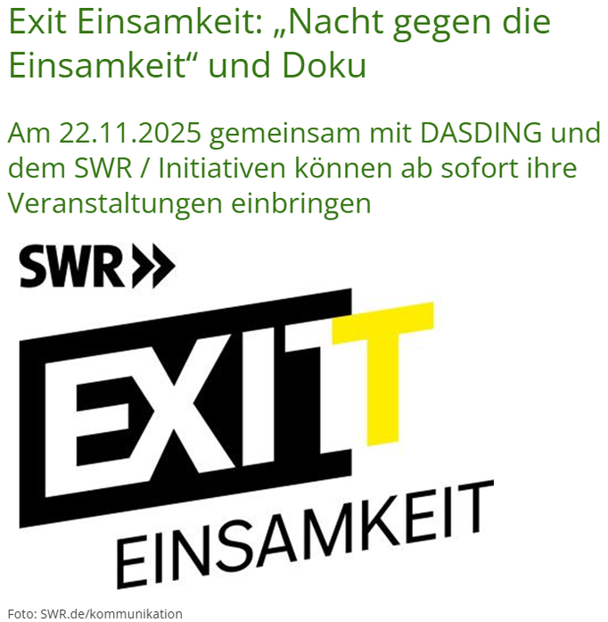 Am 22.11.2025 gemeinsam mit DASDING und dem SWR / Initiativen können ab sofort ihre Veranstaltungen einbringen
