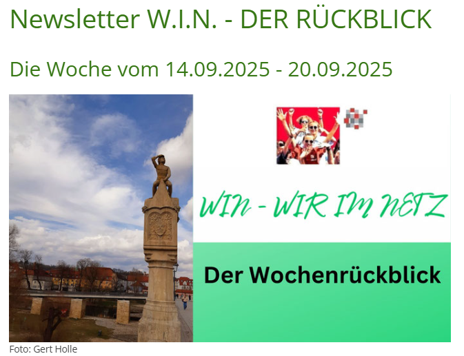 Was sollte, was könnte einmal schwerpunktmäßig in WIR IM NETZ besprochen werden? - Die Redaktion freut sich über Anregungen und Hinweise. Vielleicht möchten Sie / möchtest Du auch einen Beitrag liefern? Sie haben schöne Projekte, in ihrer Nähe und möchten darüber anderen erzählen?