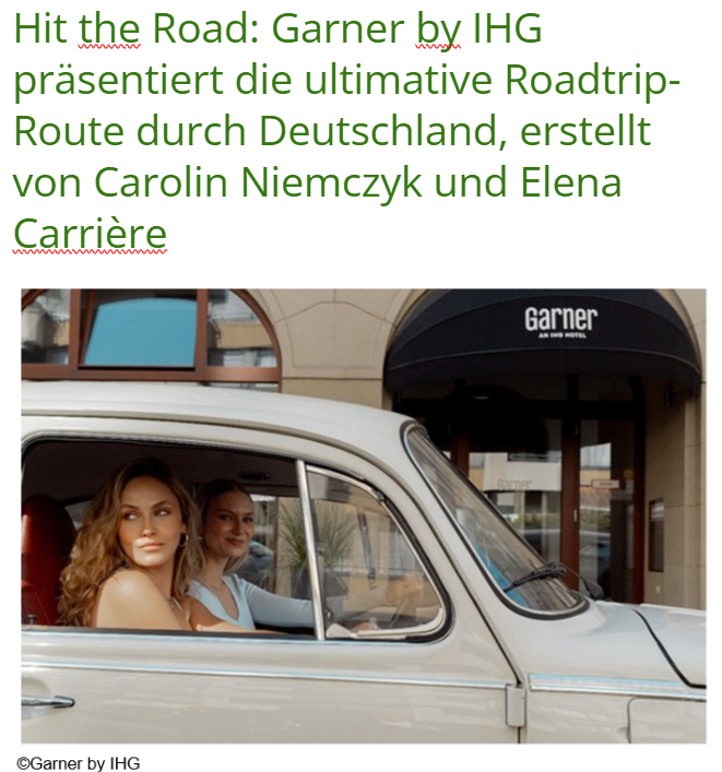 - Hit the Road: Garner by IHG präsentiert die ultimative Roadtrip-Route durch Deutschland, erstellt von Carolin Niemczyk und Elena Carrière