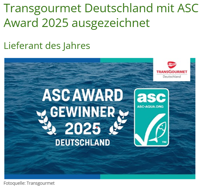 - Transgourmet Deutschland mit ASC Award 2025 ausgezeichnet