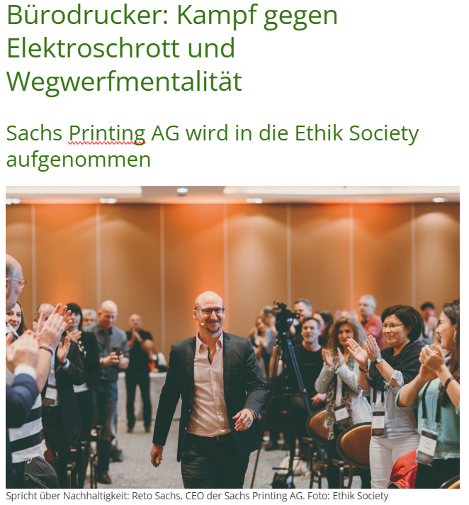 Sachs Printing AG wird in die Ethik Society aufgenommen