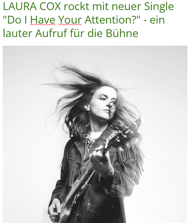 - LAURA COX rockt mit neuer Single "Do I Have Your Attention?" - ein lauter Aufruf für die Bühne