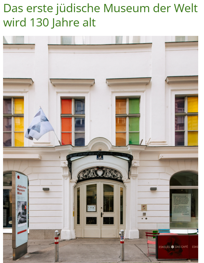 (Wien/wt) - Mit dem Jüdischen Museum Wien (JMW) eröffnete 1895 das weltweit erste jüdische Museum. Ein Ort, der die Vielfalt der jüdischen Geschichte und Kultur erzählt, aber auch die tiefe Verbundenheit Wiens mit dem Judentum beleuchtet. Anlässlich des 130. Jubiläums bietet das Jüdische Museum Wien zahlreiche Aktivitäten. Wien und seine jüdische Geschichte sind auch mit ivie, der City Guide App für Wien, auf besondere Weise erlebbar.