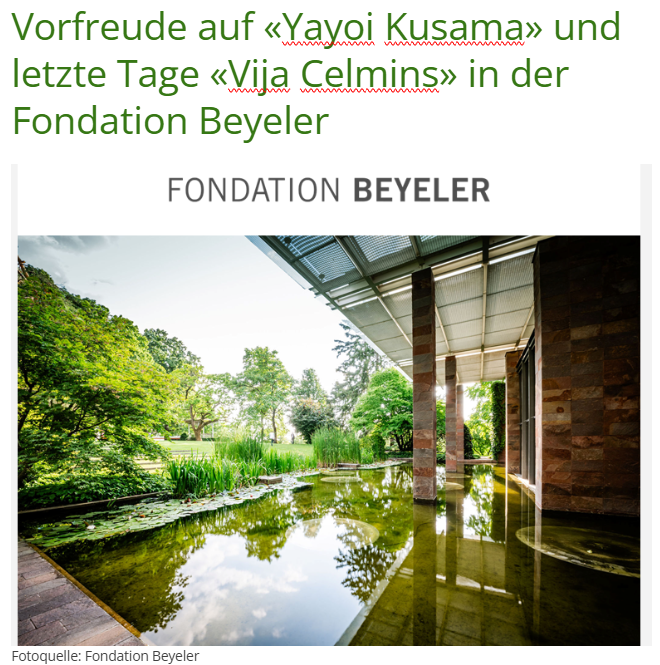 - Vorfreude auf «Yayoi Kusama» und letzte Tage «Vija Celmins» in der Fondation Beyeler