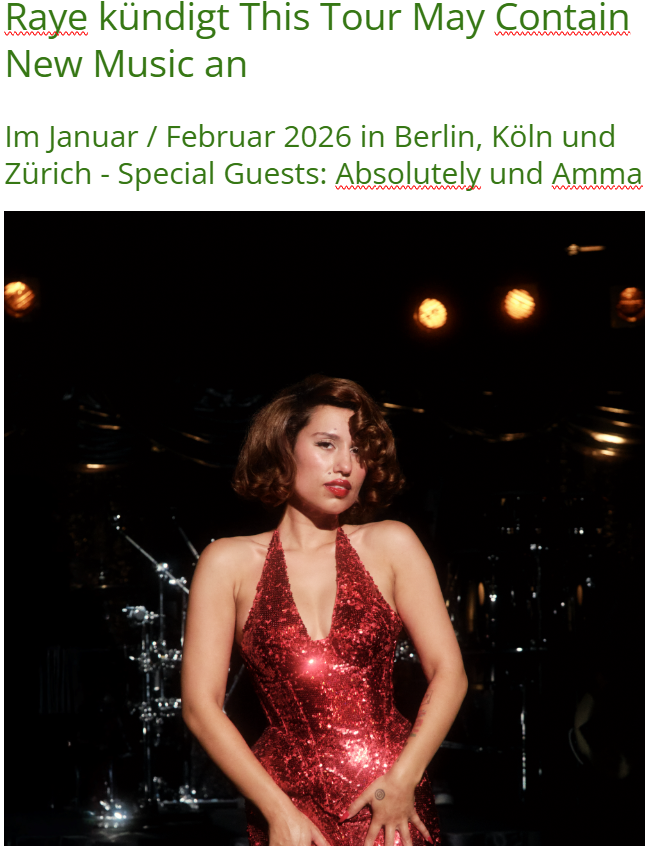 (Frankfurt/ln) - Aktuell ziert RAYE als dreifach GRAMMY nominierter globaler Pop-Superstar das Oktober-Cover der britischen Vogue. Heute erscheint ihre neue Single „WHERE IS MY HUSBAND!“ via Human Re Sources/The Orchard auf allen Streaming-Plattformen. Der Song entstand gemeinsam mit ihrem langjährigen Weggefährten Mike Sabath (Co-Writing & Produktion) und ist die erste Auskopplung aus ihrem mit Spannung erwarteten zweiten Album, das 2026 erscheint. Im Januar und Februar wird RAYE drei Konzerte in Berlin, Köln und Zürich absolvieren.