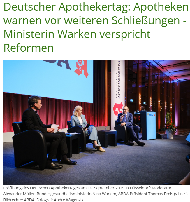 - Deutscher Apothekertag: Apotheken warnen vor weiteren Schließungen - Ministerin Warken verspricht Reformen