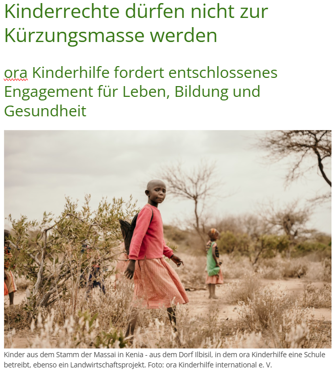 ora Kinderhilfe fordert entschlossenes Engagement für Leben, Bildung und Gesundheit