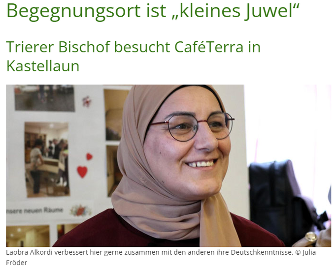 (Kastellaun/jf) – „Dieser Ort ist ein kleines Juwel“, das hat der Trierer Bischof Dr. Stephan Ackermann nach seinem Besuch des Begegnungshauses CaféTerra (Kirchstraße 9) in Kastellaun den Haupt- und Ehrenamtlichen, aber vor allem auch den geflüchteten Menschen gesagt, die sich hier seit zehn Jahren treffen, gemeinsam Deutsch lernen und Unterstützung finden. Im Rahmen der „Woche der katholischen Flüchtlingshilfe“ (28. September bis 5. Oktober), die von der Deutschen Bischofskonferenz ausgerufen wurde, hat Ackermann die Einrichtung am 4. Oktober besucht.