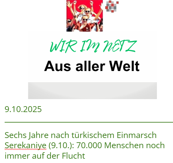 - Sechs Jahre nach türkischem Einmarsch Serekaniye (9.10.): 70.000 Menschen noch immer auf der Flucht