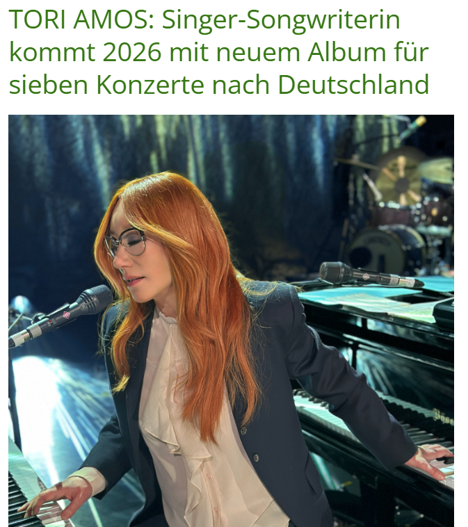 - TORI AMOS: Singer-Songwriterin kommt 2026 mit neuem Album für sieben Konzerte nach Deutschland