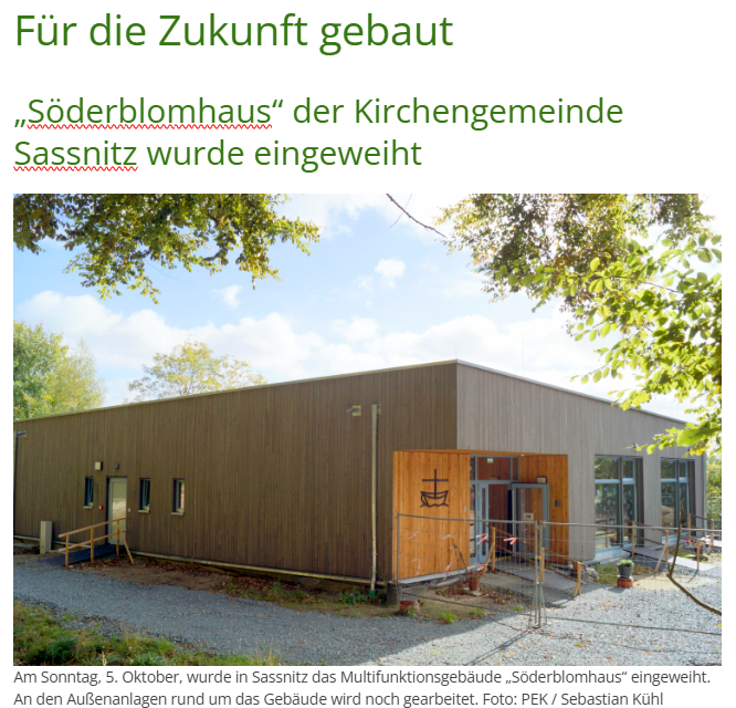 (Sassnitz/skü) - Am Sonntag, 5. Oktober, wurde in Sassnitz das neue „Söderblomhaus“ der Kirchengemeinde Sassnitz mit einem Gottesdienst und einem anschließenden festlichen Empfang eingeweiht. Als multifunktionales Gebäude beherbergt das Haus einen Kindergarten und bietet Räume für die Arbeit der Kirchengemeinde.