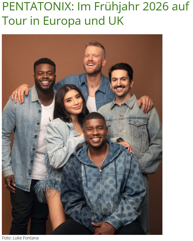 - PENTATONIX: Im Frühjahr 2026 auf Tour in Europa und UK