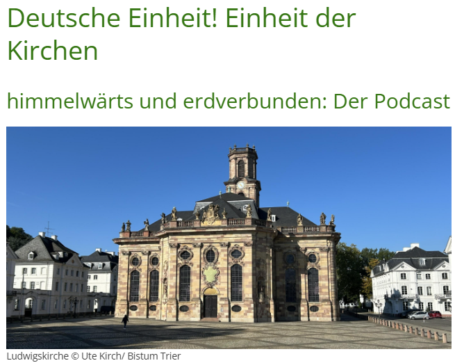 35 Jahre deutsche Einheit – die Kirchen feiern in Saarbrücken mit, mit einem ökumenischen Gottesdienst. Für den Podcast "himmelwärts und erdverbunden" fragt sich Altfried Rempe - Aber warum immer noch “die Kirchen”? Wann endlich “die Kirche”, in Einheit?
