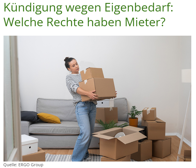 der Vermieter nur aufgrund eines berechtigten Interesses kündigen“, erklärt Sabine Brandl, Juristin der ERGO Rechtsschutz Leistungs-GmbH. „Dazu zählt beispielsweise Eigenbedarf.“ Dieser liegt