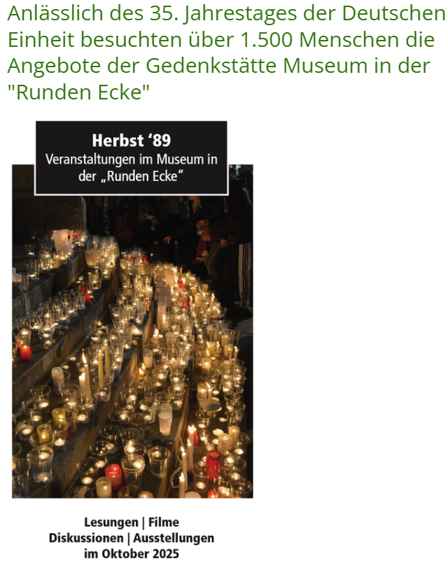 - Anlässlich des 35. Jahrestages der Deutschen Einheit besuchten über 1.500 Menschen die Angebote der Gedenkstätte Museum in der "Runden Ecke"
