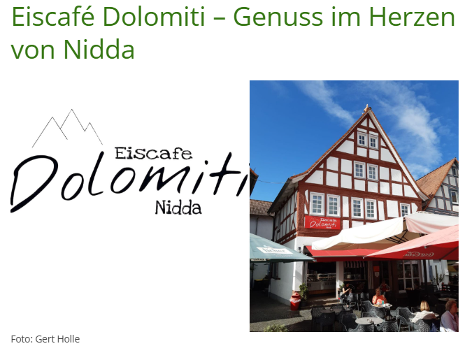 Seit 1984 ist das Eiscafé Dolomiti in Nidda (heute am Marktplatz 19) ein fester und beliebter Treffpunkt für Genießer.