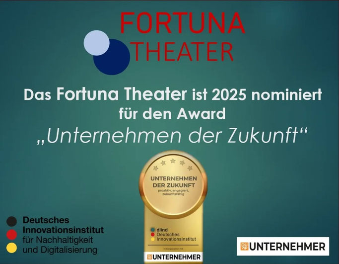 Das Fortuna Theater wurde 2025 vom Deutschen Innovationsinstitut in Kooperation mit drm DUP Unternehmer-Magazin für den Award "Unternehmen der Zukunft"nominiert!